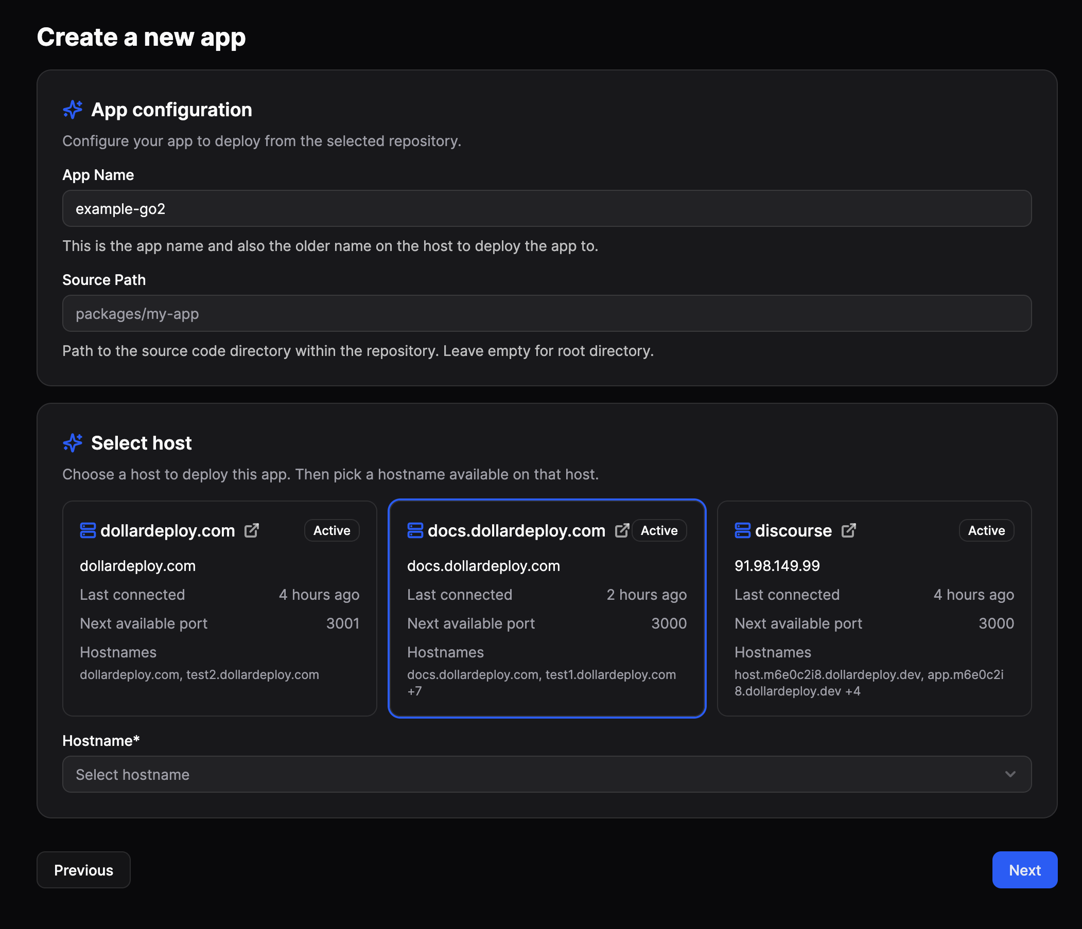 - Host Selection During App Creation ā No more back-and-forth configuration. When you create an app, you can now select which host it should run on right from the start. Your app is production-ready the moment you hit create.