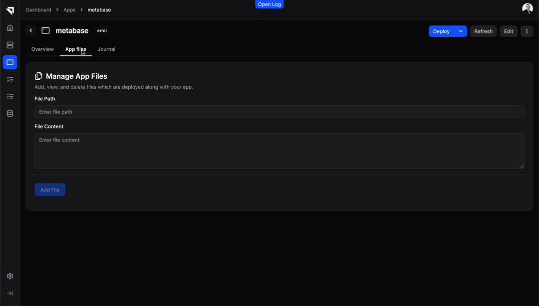 We have been working on improving your app management. We've simplified the app view by putting app files in a separate tab. You can also view app logs from your hosts by just switching to the Journal tab (requires DDAgent to be installed on the host).